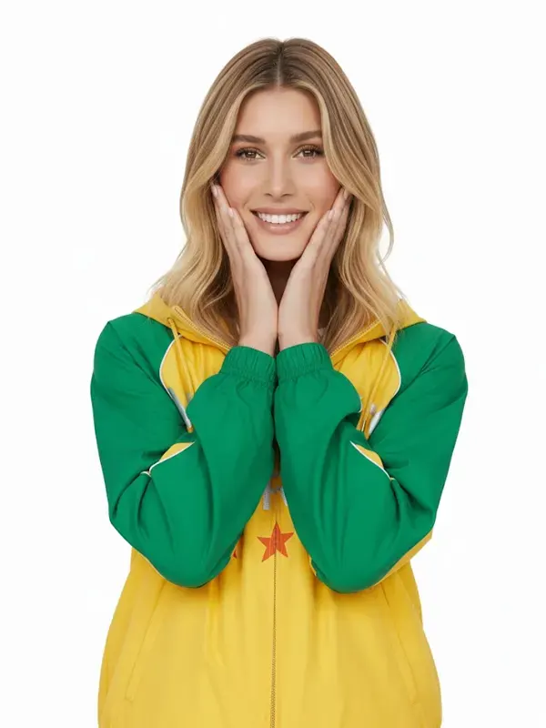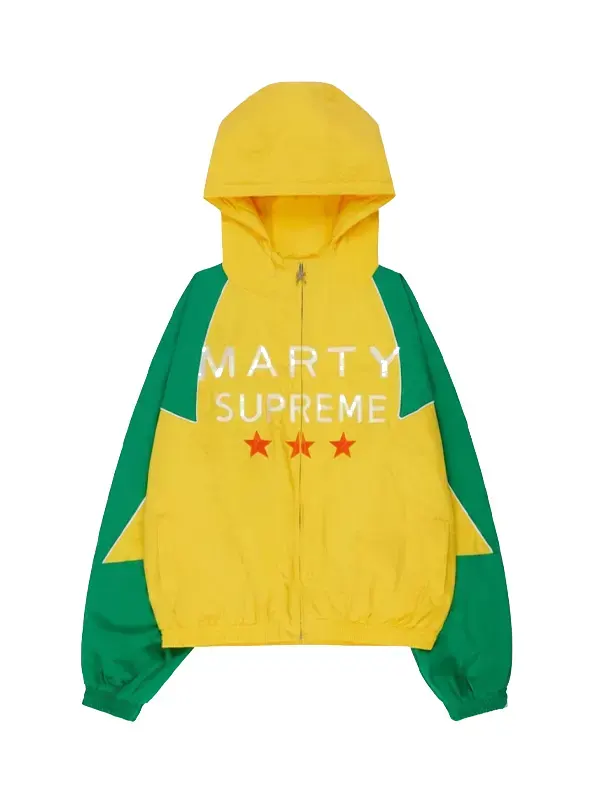 American Model Hailey Bieber Green And Yellow Marty Supreme Hooded Jacket