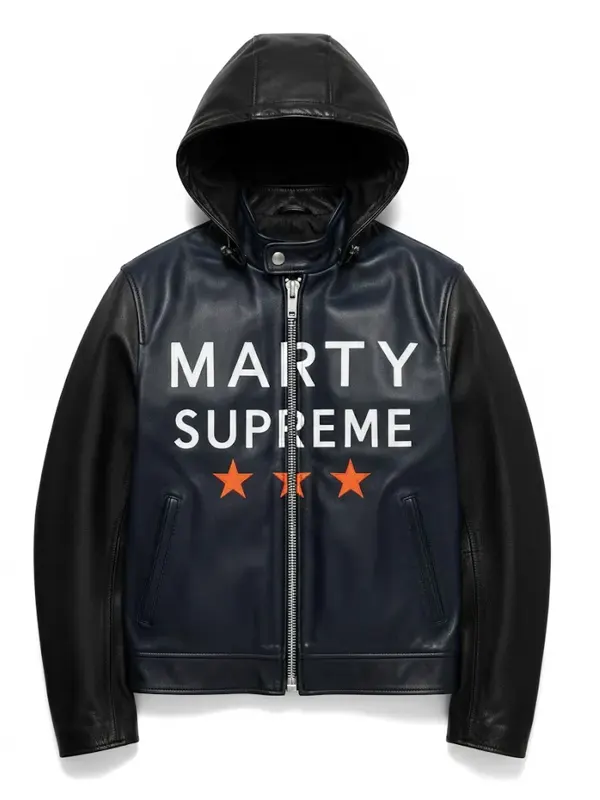 This Marty Supreme navy hooded leather jacket offers refined style and practical warmth, ideal for cool weather and weekend outings. Supple leather enhances comfort, deep navy tones blend with any wardrobe, a roomy hood adds cozy protection, a tailored shape flatters every silhouette, and subtle detailing enriches your look with timeless appeal and everyday reliability.