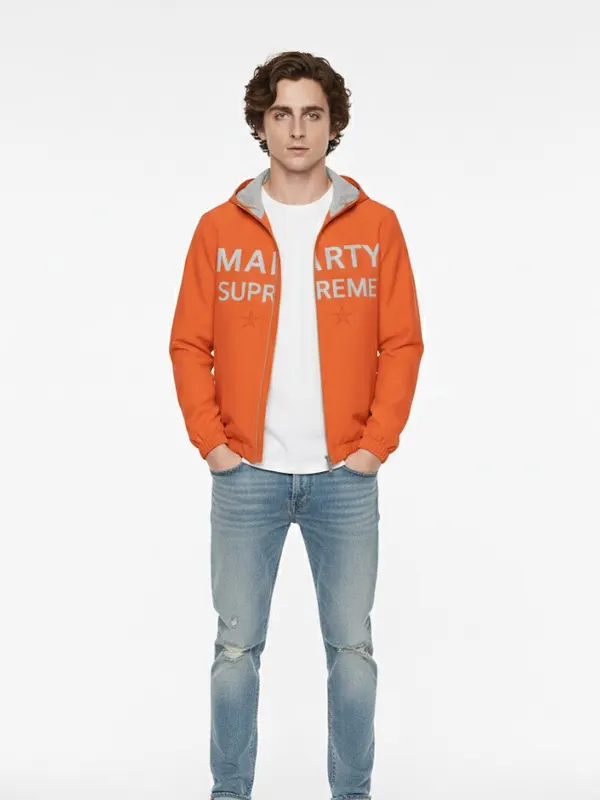 This Marty Supreme orange jacket is a stylish piece inspired by the bold look Timothée Chalamet wore for his role in the hit film Marty Supreme, where orange became the signature aesthetic of the movie’s story and marketing. Made with premium material, it brings vibrant color and modern flair to everyday wear while celebrating the film’s visual energy and cultural buzz.