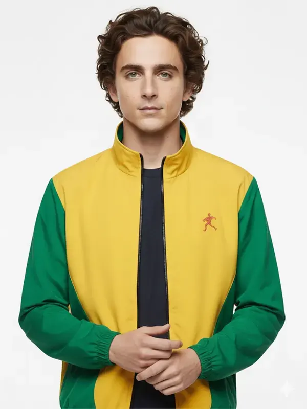 This yellow and green jacket is a vibrant track style piece inspired by the eye-catching outerwear seen around the Marty Supreme movie and its promotional buzz starring Timothée Chalamet. Crafted from a quality polyester blend with cozy lining and a full zipper, it brings sporty energy and everyday comfort to casual looks while honoring the film’s lively aesthetic.