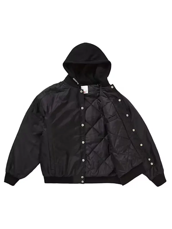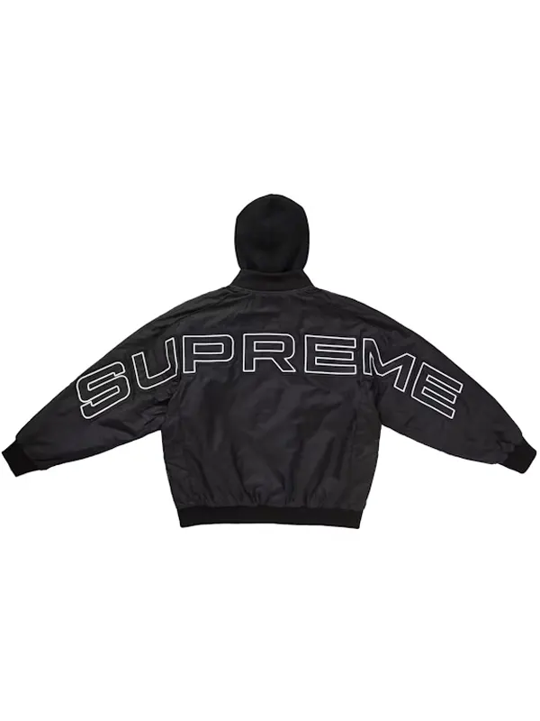 The Supreme Stadium Black Hooded Jacket blends functional design with refined streetwear style, crafted from premium weather resistant materials with a smooth interior, featuring a secure front zipper closure, adjustable hood, practical pockets for essentials and ribbed cuffs for comfortable wear, delivering versatile layering potential, subtle iconic branding and dependable protection, making it a timeless and confident addition to modern urban wardrobes.